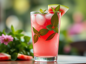 - Ice + watermelon wedge or mint sprig for garnish