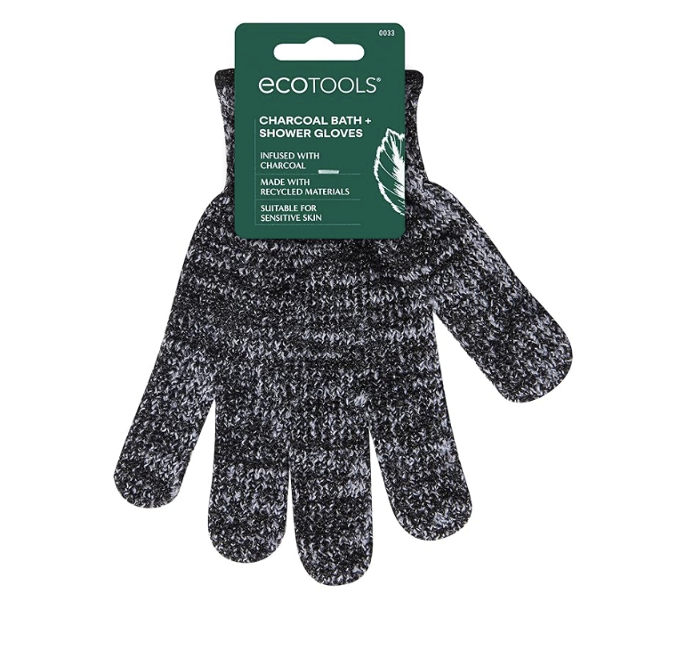 With exfoliating gloves and CeraVe SA Body Wash, I gently polish away roughness. Then, I use a lemon and turmeric kojic acid bar soap to brighten and even tone.