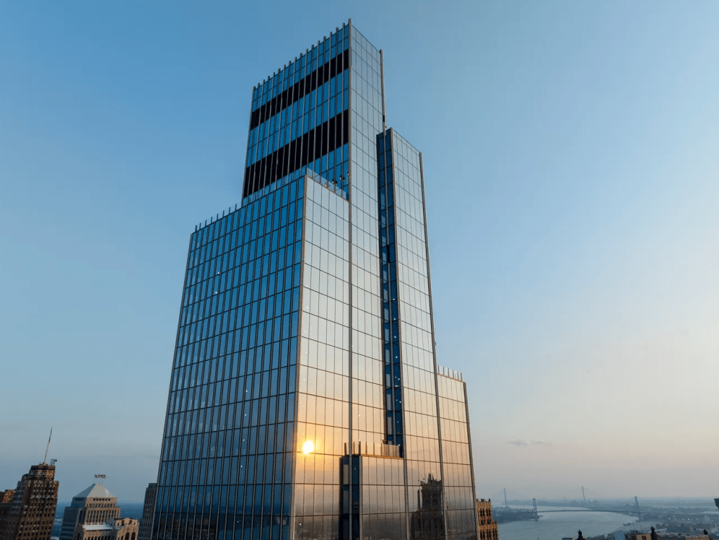 Now that space has been transformed into Hudson’s Detroit, a 49-story tower that blends offices, residences, a hotel, restaurants, and retail into one striking development. Created by Bedrock Detroit, the building is both a return and a declaration—a signal that Detroit is ready to rise again.