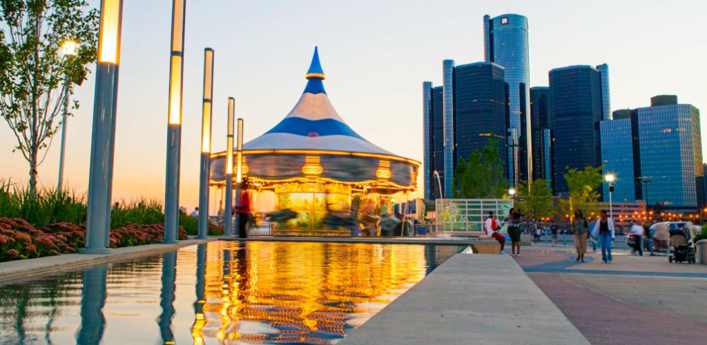 The Detroit Riverfront is one of the city’s most transformative achievements. Once dominated by shipping and industry, it is now a continuous five-mile stretch of parks, pathways, and gathering places. The revitalization has turned what was once closed off into one of Detroit’s most beautiful and welcoming destinations.