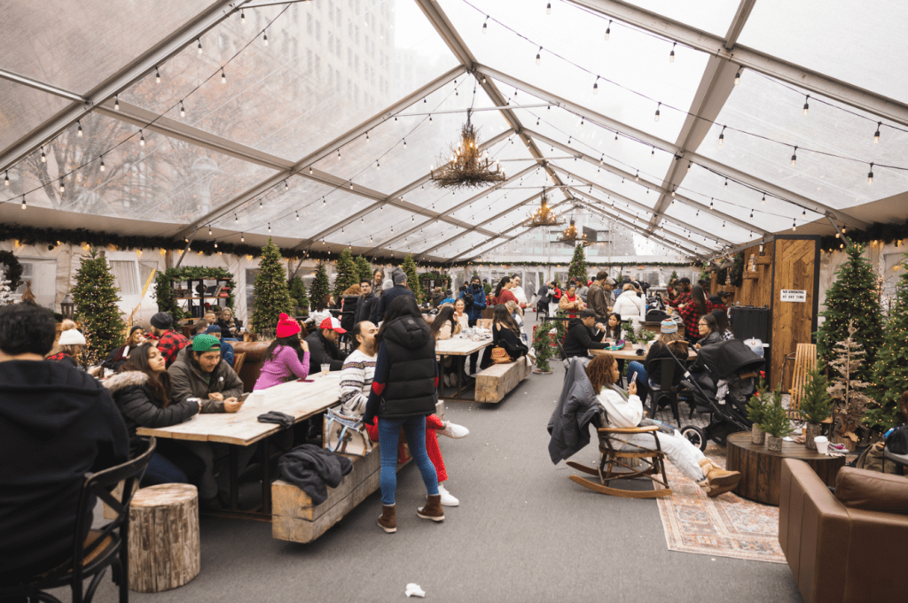 Cadillac Lodge provides one of the coziest holiday atmospheres in the city. Guests can enjoy winter drinks, warm décor, festive seating, and a comfortable indoor escape while exploring downtown. It is a perfect spot for date night, family breaks, or catching up with friends.